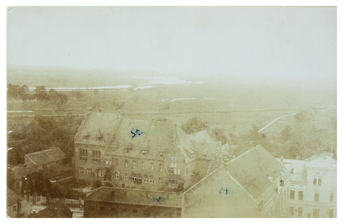Widok Czarnkowa z wieży kościelnej na miasto i Noteć -