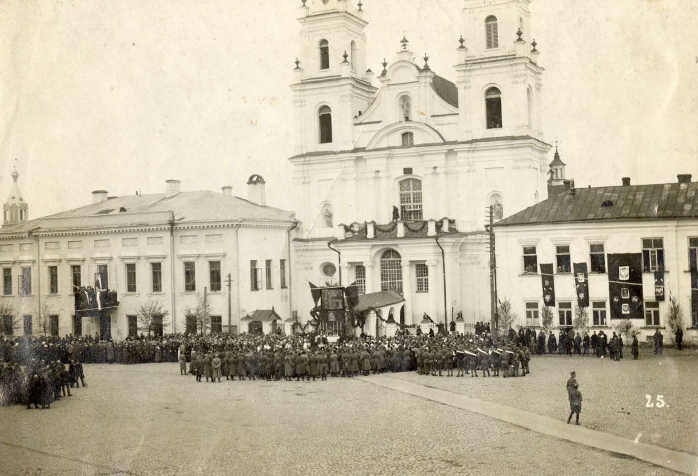 MPW 00487 - Fotografia oddziałów Polskich Sił Zbrojnych b. zaboru pruskiego (tzw. Armii Wielkopolskiej), w mundurach, podczas uroczystości wojskowej; 1919.01.26 -