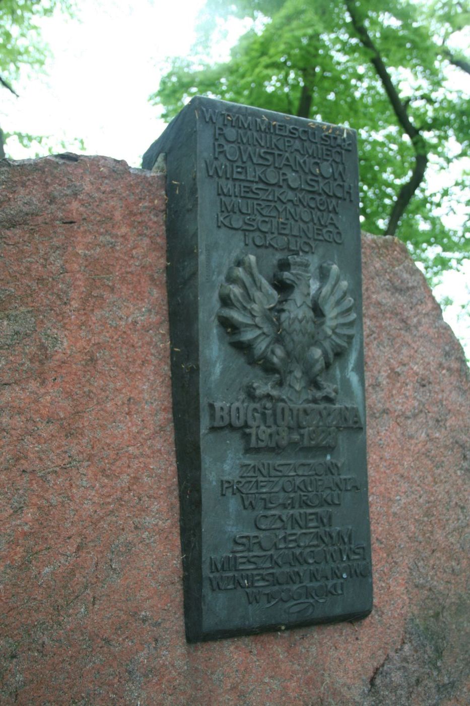 Na trójkątnym skwerze po północnej stronie kościoła parafialnego, w miejscu pomnika ku czci powstańców wielkopolskich z Murzynowa i okolicy, wzniesionego w 1928 r. i zniszczonego w 1941 r. przez hitlerowców, ustawiono w 1986 r. głaz z metalową tablicą zawierającą napis informacyjny, ozdobioną orłem w koronie (proj. Marian Banasiewicz).