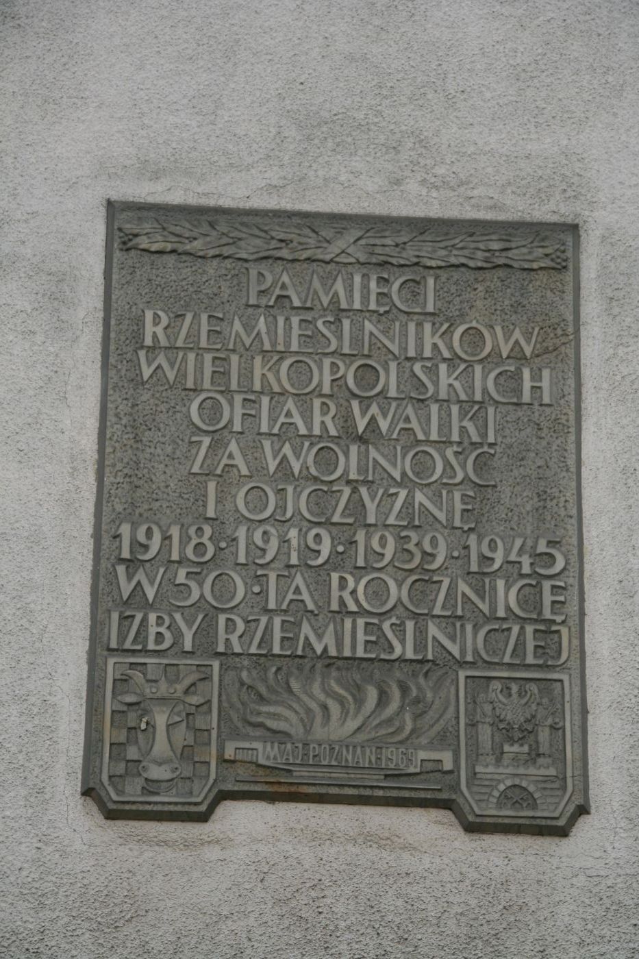 2. Na gmachu Izby Rzemieślniczej (na narożniku ul. Niezłomnych i al. Niepodległości) w jej 50-lecie wmurowano w maju 1969 r. tablicę upamiętniającą rzemieślników wielkopolskich – ofiary walk o wolność Ojczyzny w latach 1918-19 i 1939-45. Betonową tablicę zdobią herby Wielkopolski i Poznania.