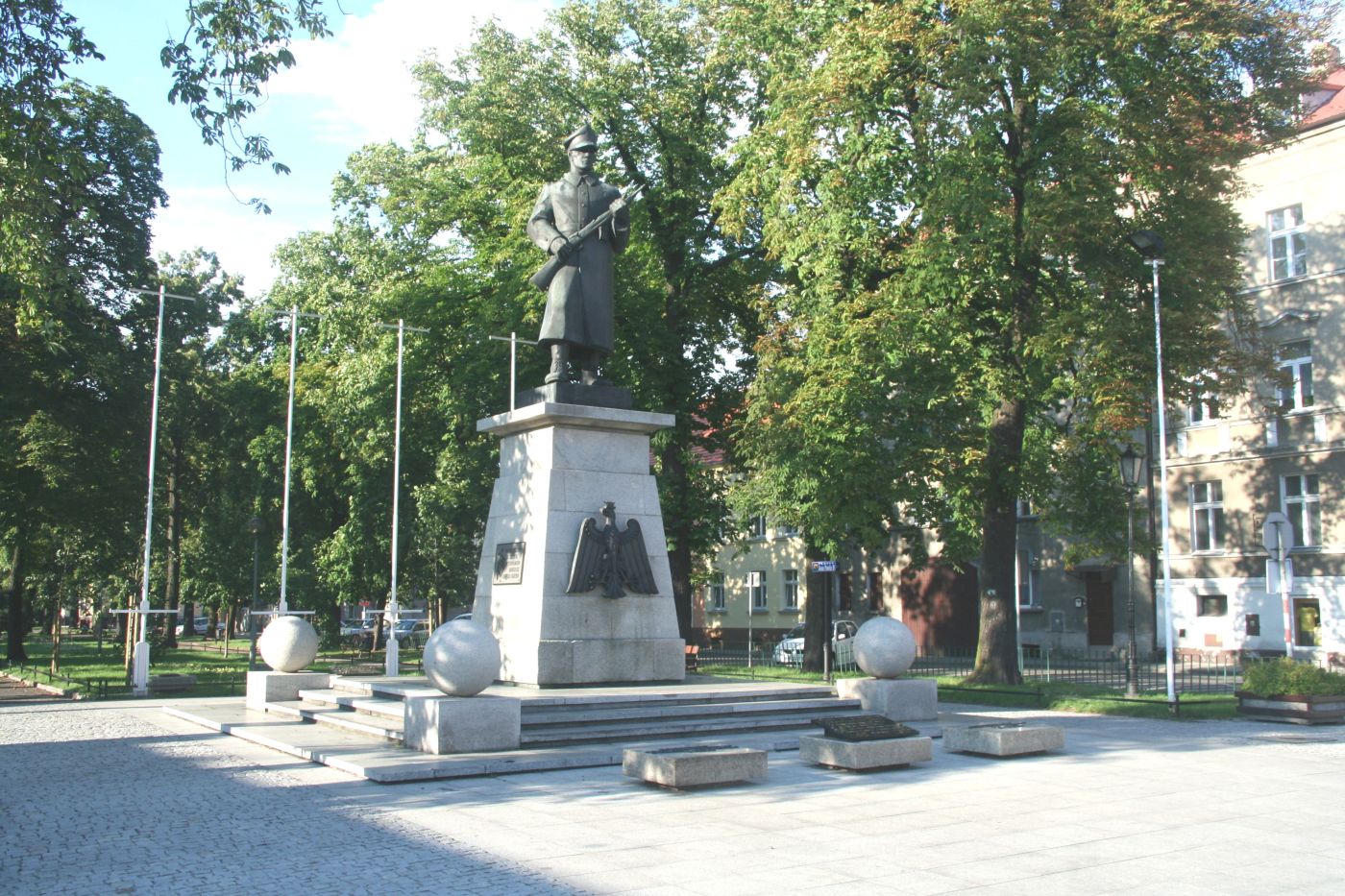 1. U zbiegu ulic Wojska Polskiego, Piłsudskiego i Wałów Kościuszki znajduje się pomnik Żołnierza Polskiego w formie brązowej rzeźby żołnierza z karabinem na dekorowanym orłem obszernym trapezowatym cokole i schodkowym podwyższeniu z kulami kamiennymi w narożach. Przed pomnikiem ułożono trzy tablice: ku czci bohaterów powstań narodowych, żołnierzy walczących o Polskę i społeczeństwa Rawicza zmagającego się z naporem germańskim. Pomnik, wykonany przez Franciszka Bohona na podstawie projektu Kazimiery Pajzderskiej, został odsłonięty 1 VIII 1926 r. Po zniszczeniu przez hitlerowców odtworzył go Antoni Hajdecki według koncepcji Wiktora Pawlikowskiego, a uroczystość ponownego odsłonięcia miała miejsce 12 X 1980 r. Wokół ułożono chodnik z czerwonawych płyt kamiennych.