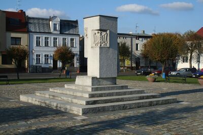 1. Pośrodku Rynku wznosi się pomnik odsłonięty w 1970 r. w ramach obchodów 600-lecia miasta, w formie pionowego bloku betonowego na schodkowym podwyższeniu, z płaskorzeźbami i napisami wykutymi po bokach (proj. Jan Szurek i Ryszard Śmiech). Poświęcony jest on mieszkańcom walczącym w powstaniu wielkopolskim, pomordowanym przez hitlerowców i poległym na frontach II wojny światowej.