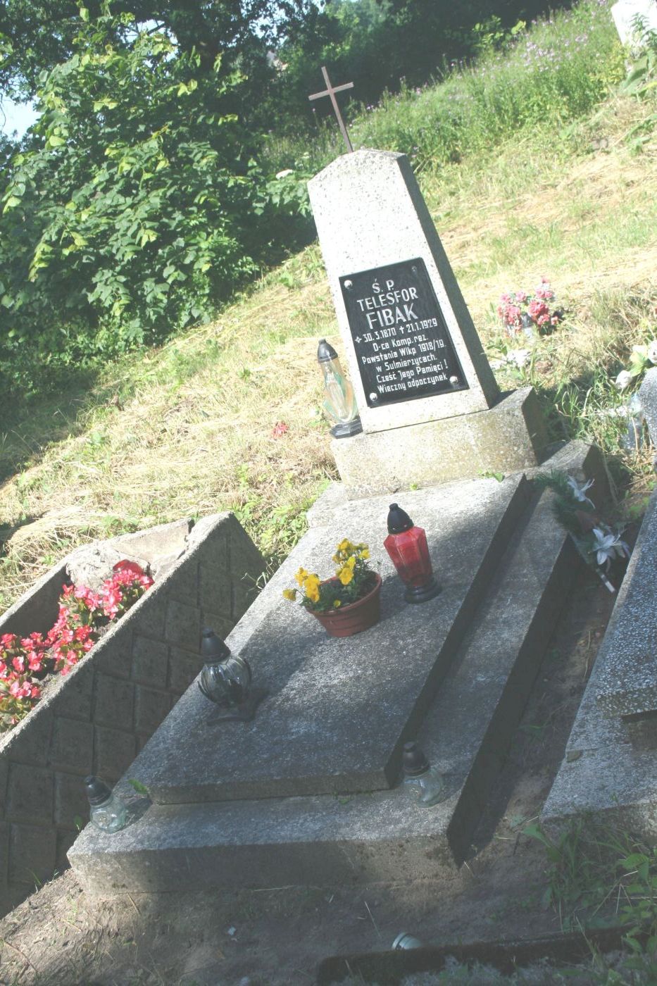 4. W głębi cmentarza spoczywa Telesfor Fibak (1870-1929), dowódca kompanii sulmierzyckiej w powstaniu wielkopolskim. Grób ma płytę betonową oraz trapezowaty nagrobek z wyrytym krzyżem powstańczym i czarną tablicą informacyjną.