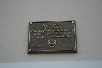 2. Na gmachu Starostwa Powiatowego (ul. Wojska Polskiego 4) 15 I 2009 r. odsłonięto metalową tabliczkę upamiętniającą 90. rocznicę powstania wielkopolskiego i 10. rocznicę restytucji powiatu. Zdobi ją herb powiatu.