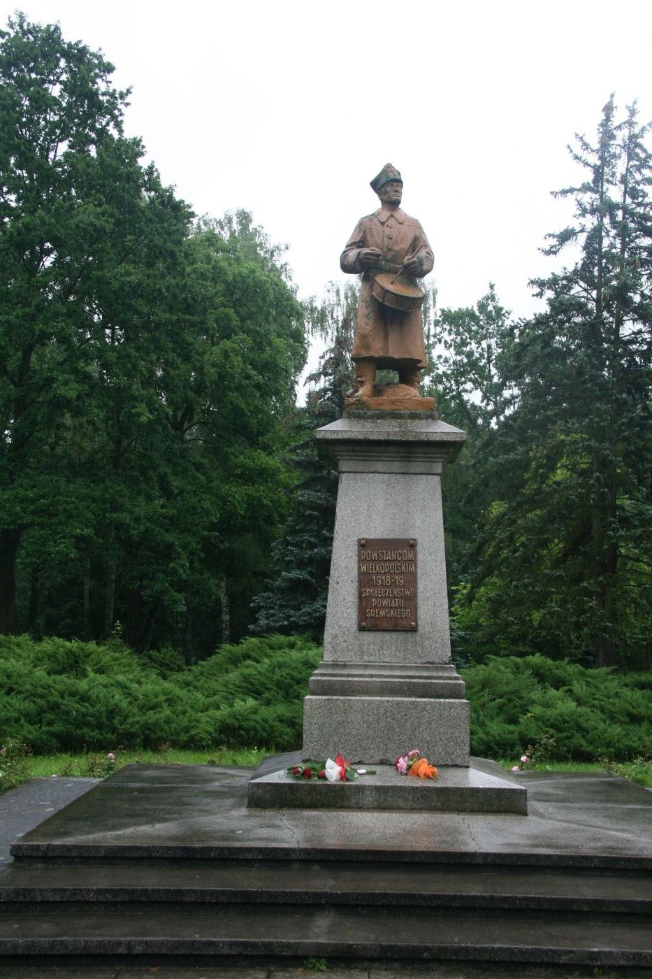 1. W głębi Parku Powstańców Wlkp. (rozciągającego się po wschodniej stronie starej części miasta) wznosi się pomnik powstańców wielkopolskich w formie brązowej rzeźby dobosza na wysokim cokole granitowym. Pomnik ten, zaprojektowany przez Władysława Marcinkowskiego, odsłonięto 15 XI 1925 r. na rynku przed ratuszem. Usunęli go hitlerowcy 11 IX 1939 r. W 1959 r. przewieziono zachowany cokół do parku i 27 VII 1961 r. odsłonięto na nim brązowy odlew krzyża powstańczego. Rzeźbę dobosza odtworzył Jerzy Sobociński; ustawiono ją na cokole 14 VI 1969 r.
