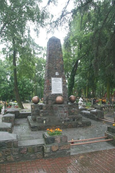 6. Na staromiejskim cmentarzu parafialnym (znajdującym się przy ul. Cmentarnej), pośrodku jego północnej części, wznosi się wysoki obelisk z ciosów granitowych projektu Witolda Szulca, poświęcony 15 VIII 1926 r. Od północy umieszczono na nim małą płaskorzeźbę głowy Chrystusa, a pod nią tablicę z nazwiskami pochowanych tu pięciu szeregowców z batalionu śremskiego, poległych na różnych frontach w styczniu 1919 r. Na występach cokołu znajdują się cztery metalizowane kule, a całość otacza murek z takich samych jak pomnik kostek granitowych. W innych miejscach tego cmentarza spoczywają zmarli później inni uczestnicy powstania wielkopolskiego.