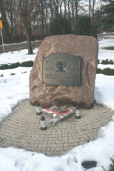 Na skwerze przed Miejsko-Gminnym Ośrodkiem Kultury „Strzelnica” (ul. Dworcowa 1) 7 II 2009 r. odsłonięto pomnik poświęcony powstańcom wielkopolskim. Na dużym głazie, ustawionym na okrągłej podstawie wybrukowanej kostkami kamiennymi, znajduje się tablica metalowa dekorowana wizerunkiem orła w koronie.